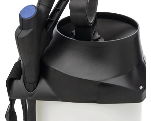 De container met 8 l vulinhoud en een totaalinhoud van 12,5 l kan aan de zijkant worden gedragen en heeft een groot drukpolster, wat minder napompen betekent. De FOAMER is uitgevoerd met een 45 cm rechts verlengpijp, een ergonomische afsluitklep met filter en een speciaal vlakstraalmondstuk 110-06 van kunststof. De 2,5 m lange slang van polyethyleen biedt comfortabel werken en een groot bereik.